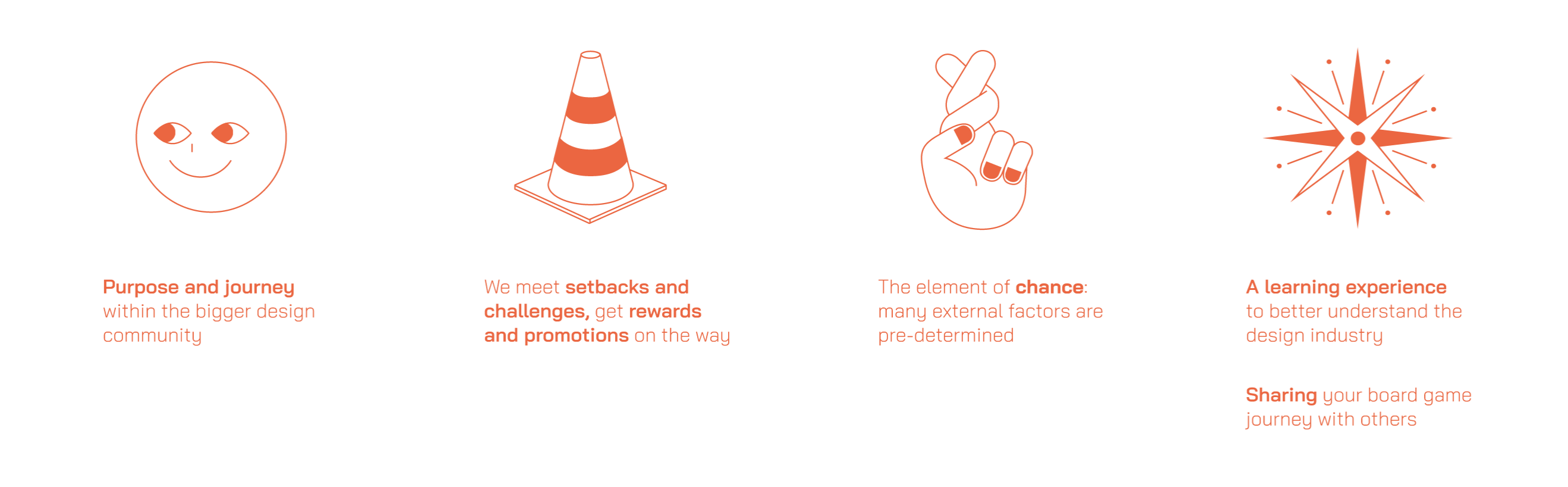 As designers, we each embark on unique journeys of growth and self-discovery. Our board game visualizes the realities of the design industry by curating personalized gameplay based on the user’s background in design.