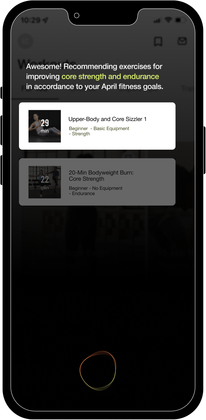 Smart recommendations on workouts and alternatives are generated based on the user’s exercise history and goals